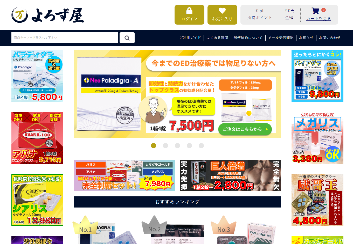 人気のED治療薬、ジェネリック薬を中心にお届けする医薬品サイトです。 バイアグラ、レビトラ、シアリスをはじめ、メーカー正規品の海外ジェネリック薬を、安心・安全にお届けいたします。